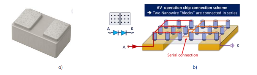 This product release marks a world-first industrial milestone: the successful manufacturing of 3D Nanowire based microLEDs operating at 6V, with an ultra-compact 15 µm × 30 µm single body chip size, manufactured on 200 mm silicon wafers.