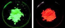 "β-sialon" green phosphor (left) and CaAlSiN3 red phosphor (right)
