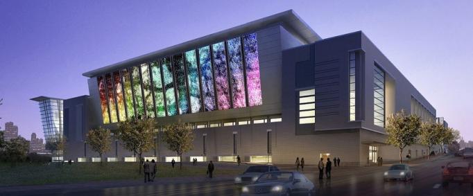 It’s reported that the shimmer wall adorns the McDowell Street side of the new convention center in downtown Raleigh. Next month, the shimmer wall art installation measures 211 ft long by 44 ft high and will adorn one exterior wall of the city's new convention center.